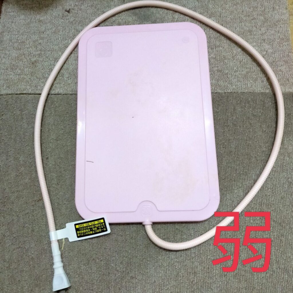 「弱」約30℃ 手で触ってみるとやんわり温かい感じです。